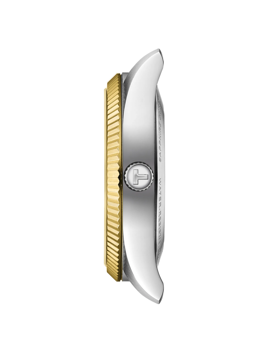 Sepete EkleTissot T-My Lady Gold 29mmMateryal: 18K sarı altın bezel ile 316L paslanmaz çelik kasaCam:Çizilmeye dayanıklı safir kristal camKordon Detay:Paslanmaz çelikKasa Seçenekleri:Şeffaf arka kapakKadran Reng..